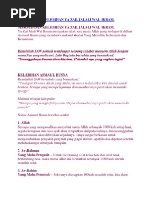 Maksud Dan Kelebihan Ya Zal Jalali Wal Ikram Pdf